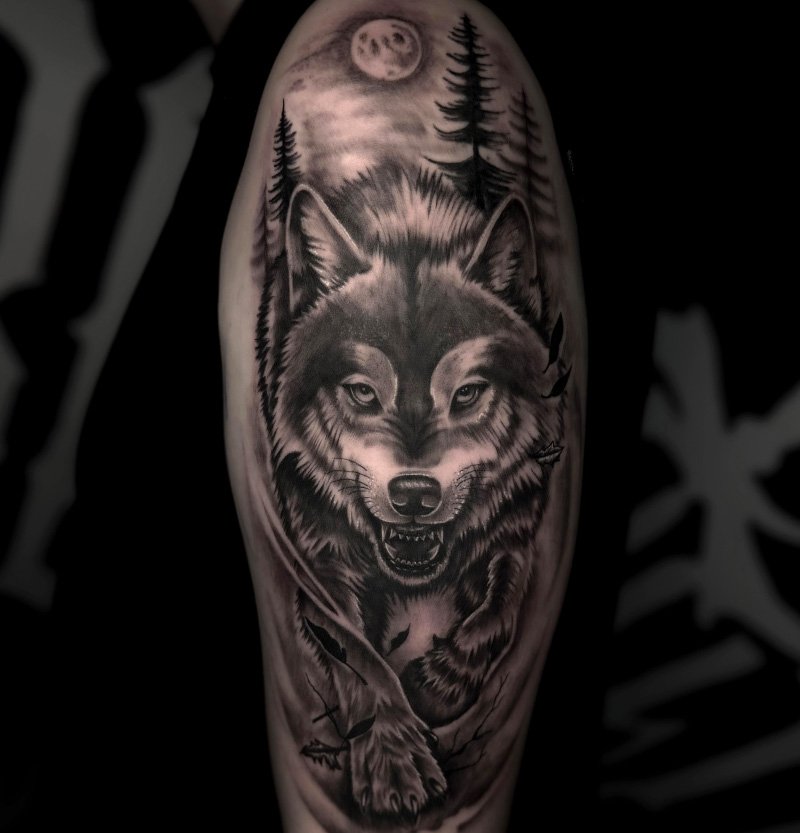 Ein realistischer Touch in deinem Tattoo ? Ob Landschaft, Gesichter, Tiere oder anderes – mit den eigens erstellten Grautönen unserer Künstler bringen wir realistische Elemente in dein Design.