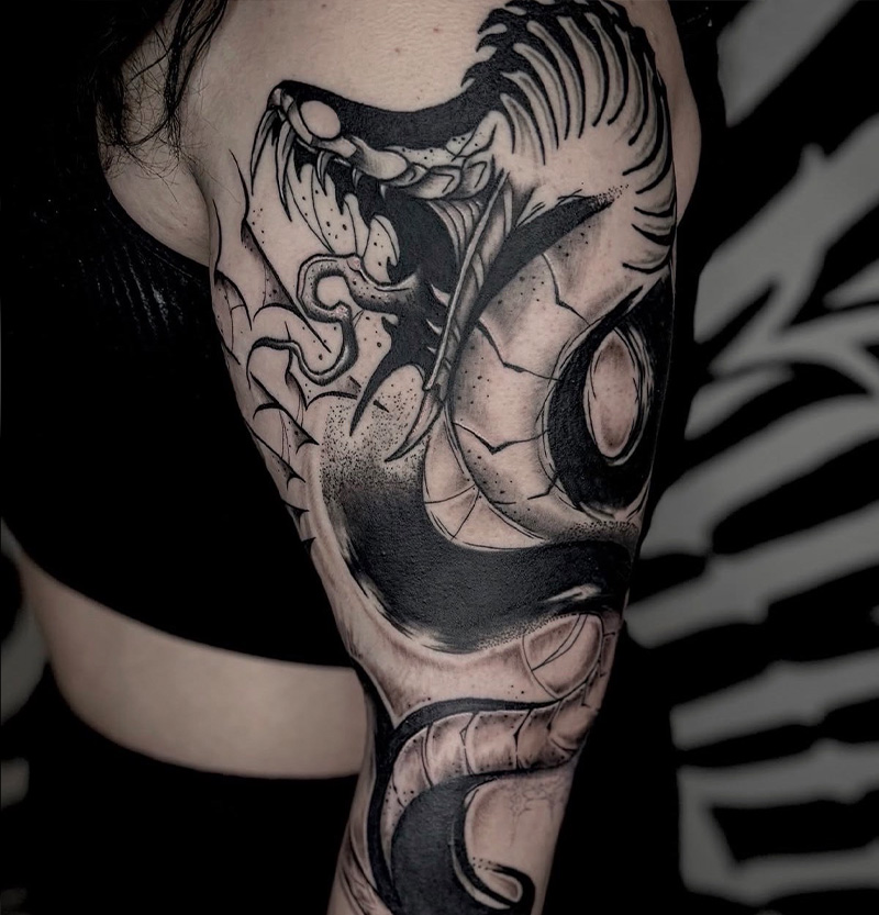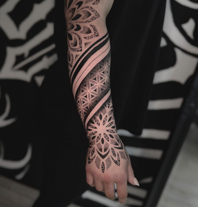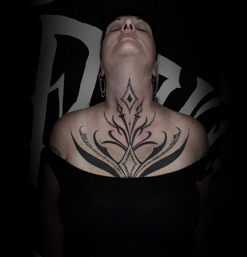 Entdecke die Kraft und Eleganz von Blackwork Tattoos. Mit kräftigen schwarzen Linien und Schattierungen entstehen beeindruckende Designs, die durch ihre Einfachheit und Intensität bestechen.